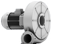A high-pressure fan suitable for working with pressure differences of up to 17 300 Pa. The fan either has a direct drive (FU) or a built-in frequency converter (FUK). Other versions have belt transmission and can be used with high revolutions – up to 6200 rpm. The stator and impellers are usually made of aluminium. Stainless versions and versions with ATEX certification for explosive environments are also available.
