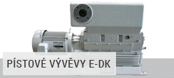 Pístové vývěvy Leybold E / DKPístové vývěvy Leybold se vyrábějí ve dvou typech. Jednostupňové vývěvy s označením E a s čerpací rychlostí až 250 m3/h a max. vakuem až 0.05 mbar. Dvoustupňové pístové vývěvy s označením DK, s čerpací rychlostí až 200 m3/h a max. vakuem až 0,0005 mbar. Vývěvu lze použít i jako předvývěvu v čerpadlových vakuových systémech. Klíčové parametry vývěv Leybold E a Leybold DK: